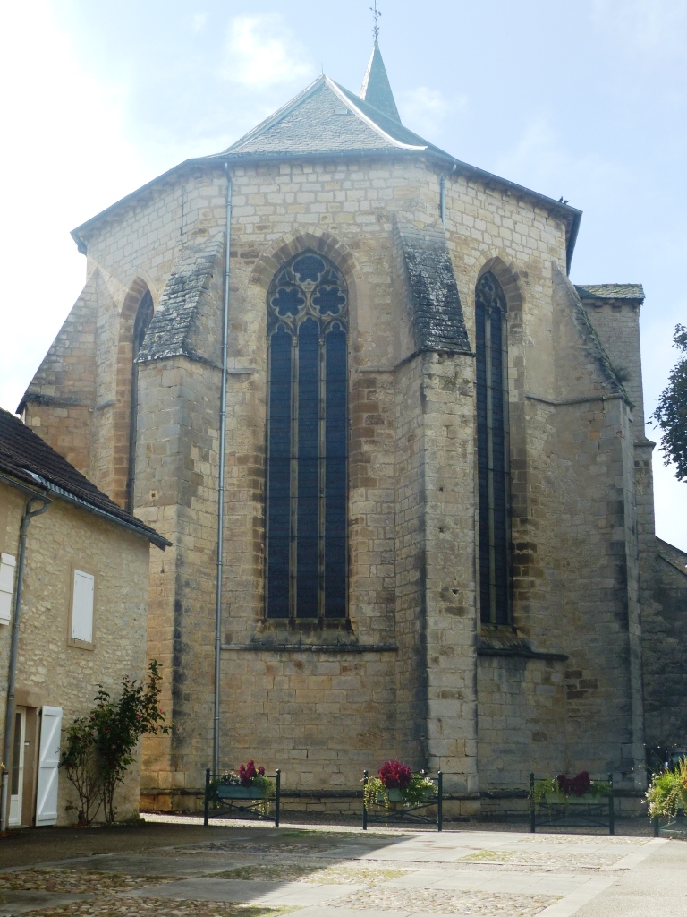 gothique du Rouergue (gothique méridional). Les vitraux sont formés de dalles percées, la rose polylobée compte 10 rayons et le clocher hexagonal qui est implanté sur le côté date du XIVème siècle. Visite libre - accueil aux heures d'ouverture Après la défaite du comte de Toulouse, Najac fut donné à Alphonse de Poitiers. Une tentative de révolte des habitants engagea le frère de Saint-Louis à prendre des précautions et il confia à un architecte du domaine royal la mission de renouveler et de renforcer les défenses du château, vers 1253. La construction de l'église est contemporaine de celle château, ce qui laisse supposer que l'architecte du château fut aussi celui de l'église. L'édifice comporte une nef à chevet plat, et deux chapelles qui dessinent les bras du transept, peu saillants. La chapelle nord est recoupée par une tribune au-dessus de laquelle se trouve le clocher, hexagonal en plan. Il porte à chaque angle une colonnette qui descend jusqu'à la corniche et se retourne sur toutes les arêtes du tambour. |